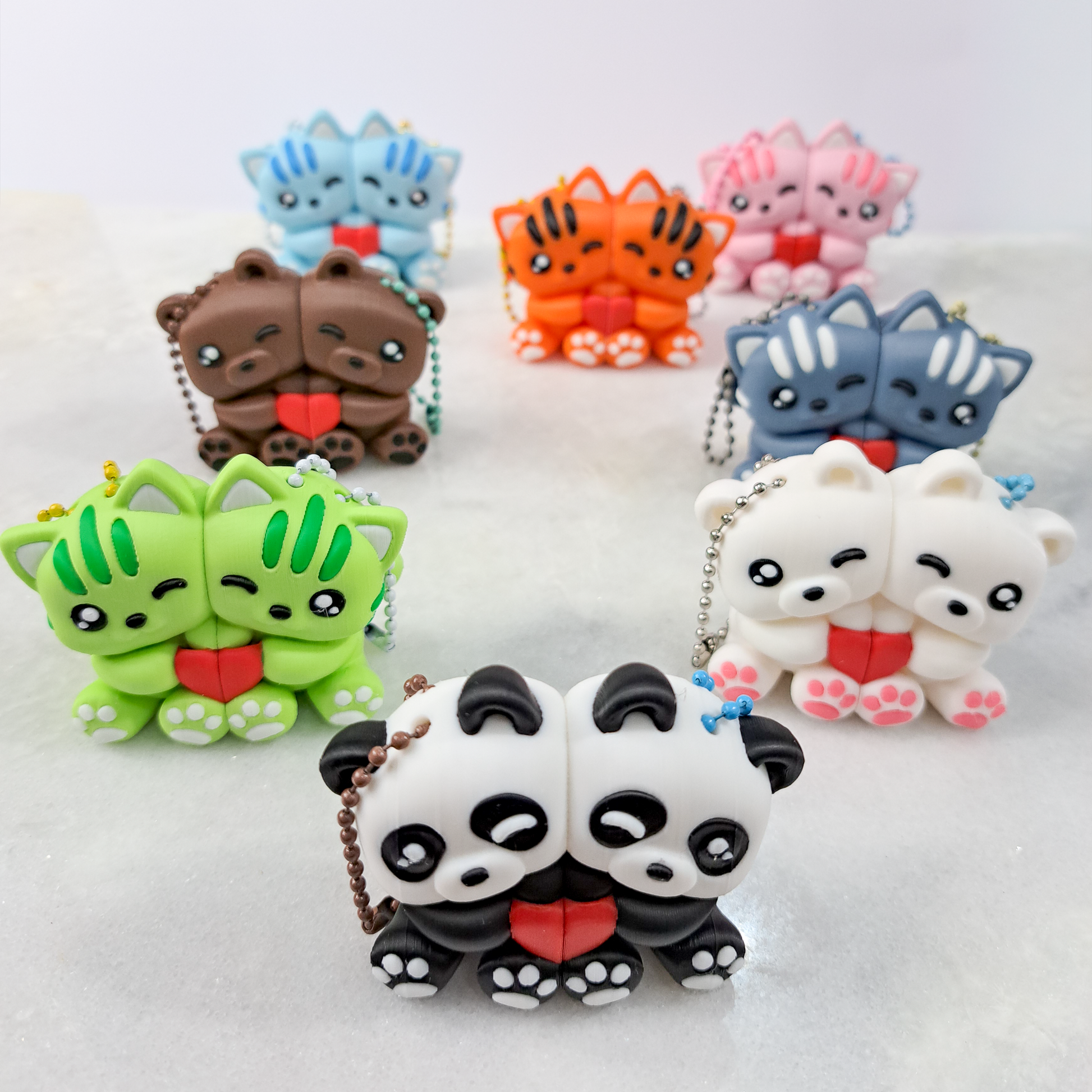 Chaque porte-clés est composé de deux moitiés aimantées qui s’attirent naturellement.